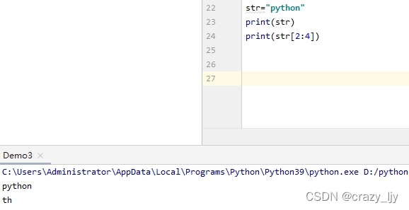 索引2为字母t,索引4为字母0,str[ 2:4 ]的结果是th