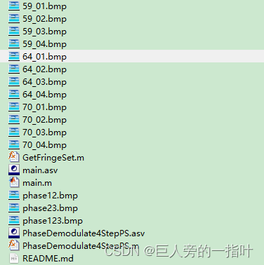 结构光三维重建(四步相移&多频外差法)matlab实现(一) 前言:这里主要梳理自己在理解四步相移法和三频外差法,以及用MATLAB实现条纹图生成,四步相移求相位主值,三频外差相位展开(解包裹)的过程。废话不多说,一些基本思想概念可以看下面参考文章,里面有详细介绍。这里主要对遇到的问题展开阐述。