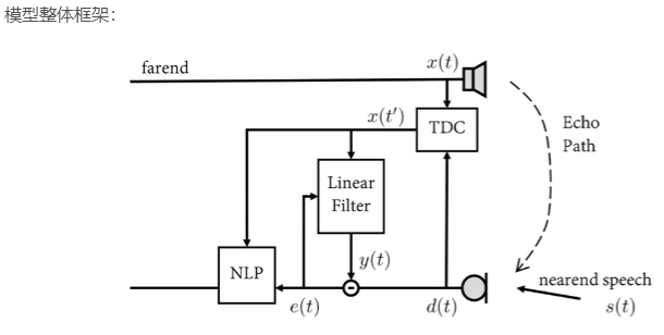 基于wRLS滤波器和神经网络回声残留抑制的AEC模型——模型框架介绍 (3)NLP回声残差抑制网络进行mask的学习:Deep Feedforward Sequential MemoryNetwork (Deep-FSMN);深度前馈顺序记忆网络;输入:回声信号的估计Y,残差信号E,近端麦克风信号D(三个输入均是Fbank特征,维度是80);输出:ISTFT(Mask*STFT(e))(2)Linear Filter 线性滤波器,进行回声信道估计:wRLS 加权递归最小二乘滤波器(频域),即,先对输入信号进行短时傅里叶变换,针对不同帧的相同频点进行RLS线性回声消除。