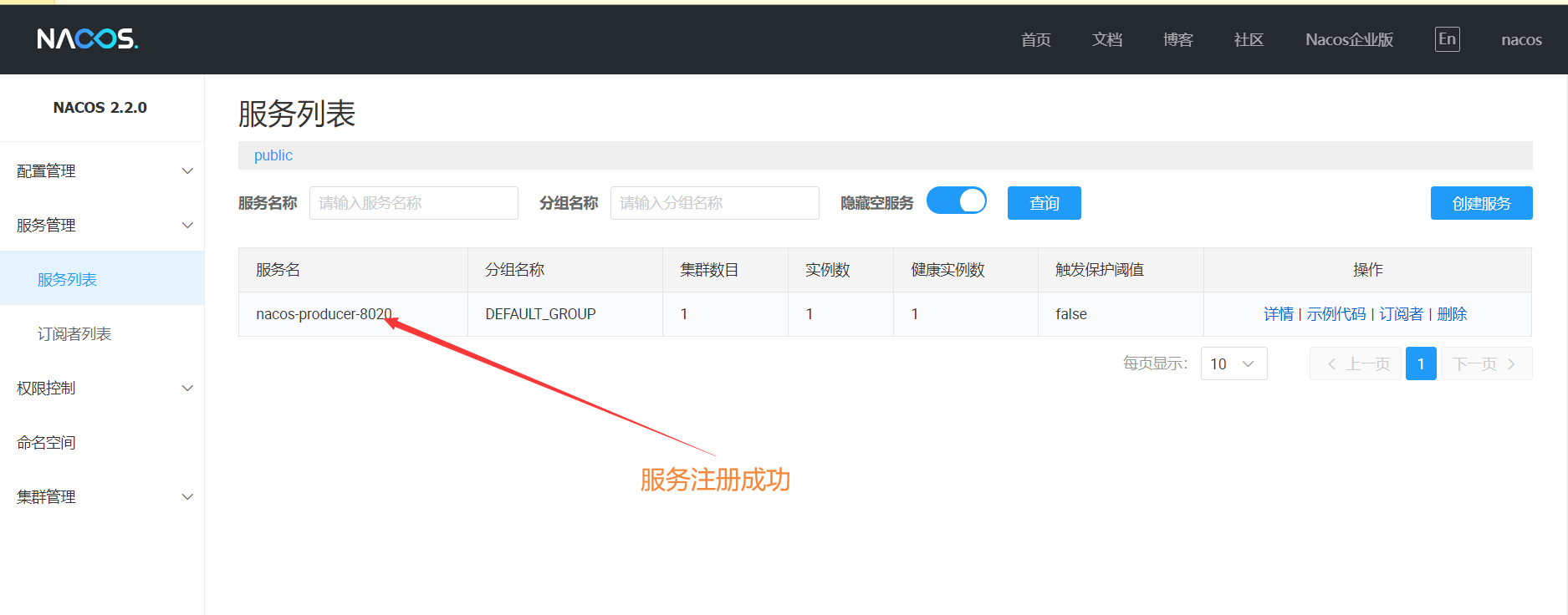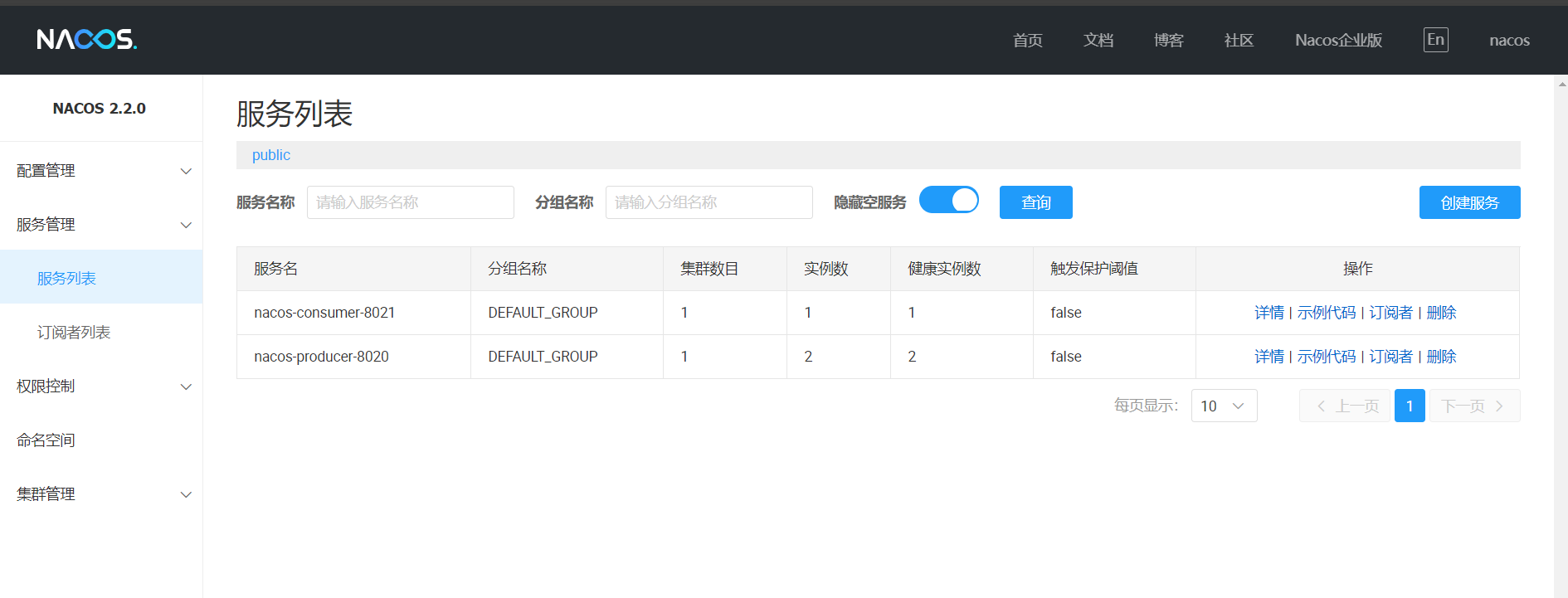 分别运行三个服务成功后,nacos上的web界面即可看到三个服务全部注册成功。