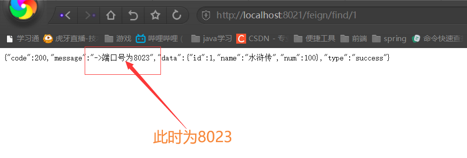 再次刷新接口后即可发现调用服务端口变为了8023,即实现了轮询的负载均衡。