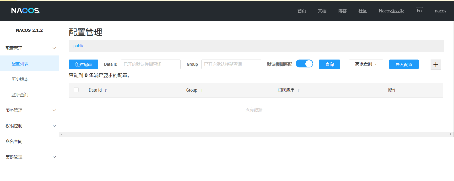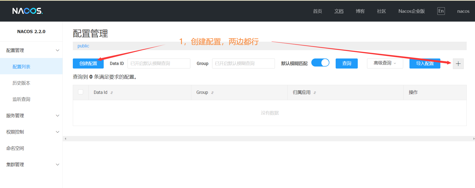 因此首先需要nacos中配置一些需要使用的相关配置,直接在可视化界面上配置即可。