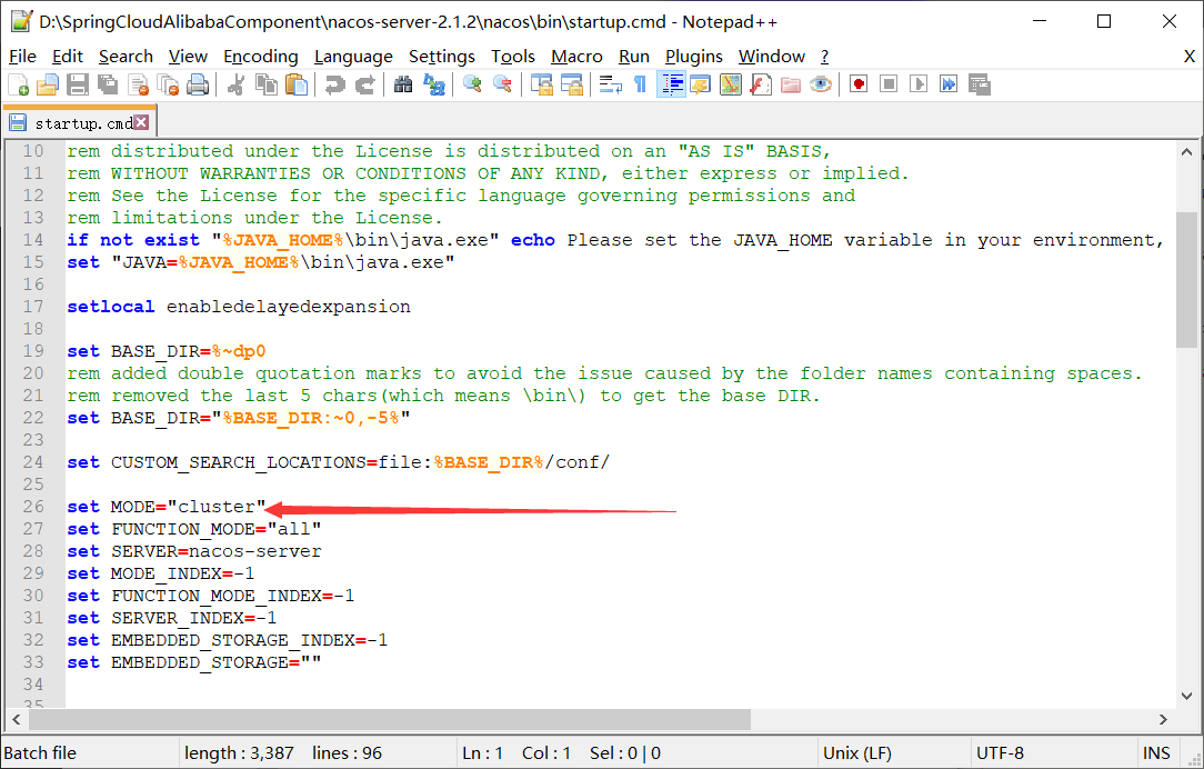 setMODE="cluster"