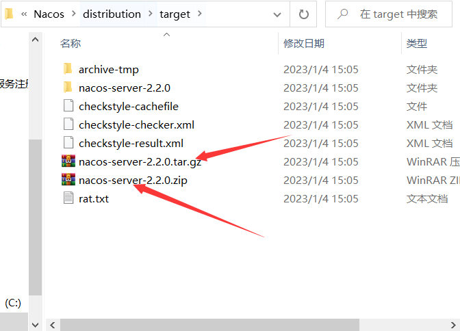 等待maven打包完成后,在Nacos\distribution\target目录下就能得到可用于windows和Linux的压缩包了。