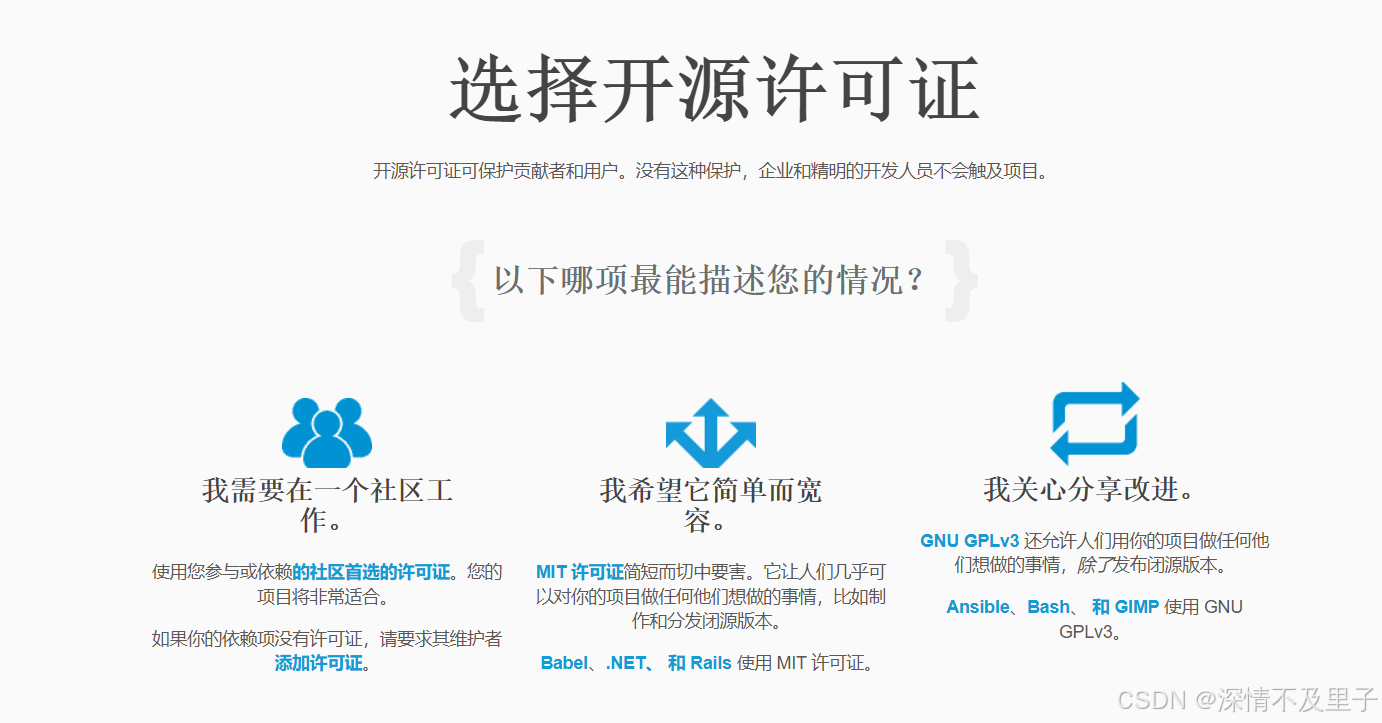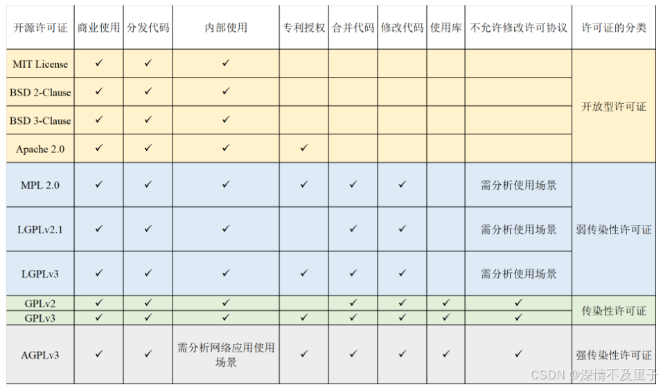 当然了每种开源许可都有多个版本,其具体要求和应用场景可能有所不同。建议大家查看以下以获取更详细的内容: