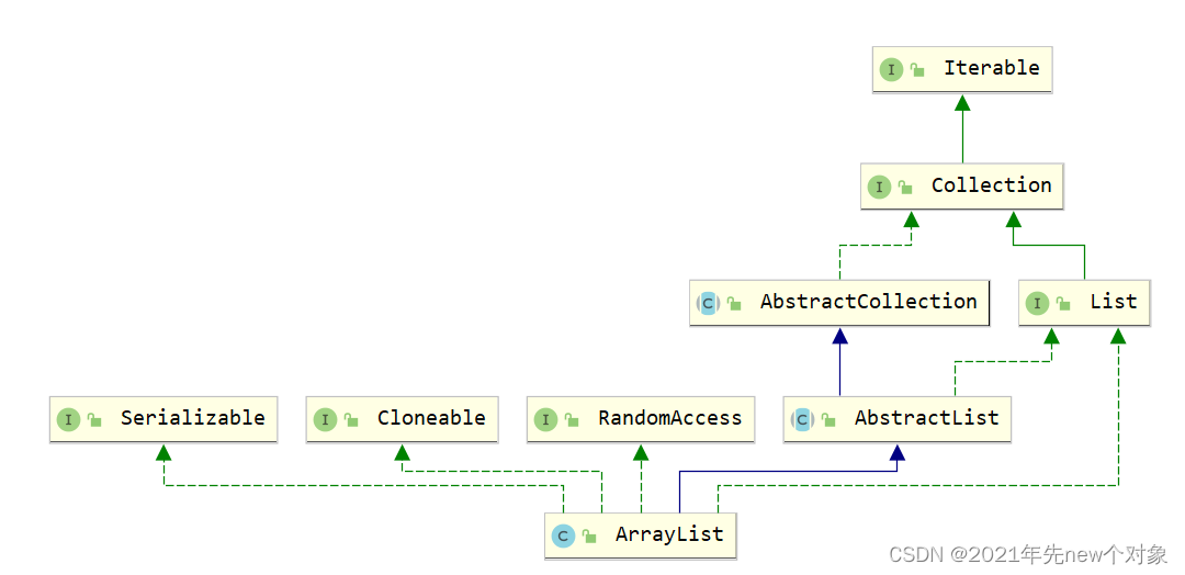 ArrayList 类是一个可以动态修改的数组,与普通数组的区别就是它是没有固定大小的限制。ArrayList 继承了 AbstractList ,并实现了 List 接口。