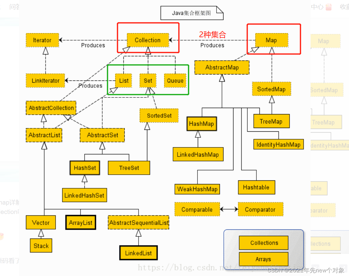Java 集合框架主要包括两种类型的容器,一种是集合(Collection),存储一个元素集合,另一种是图(Map),存储键/值对映射。Collection 接口又有 3 种子类型,List、Set 和 Queue,再下面是一些抽象类,最后是具体实现类,常用的有 ArrayList、LinkedList、Vector、HashSet、LinkedHashSet、HashMap、LinkedHashMap …