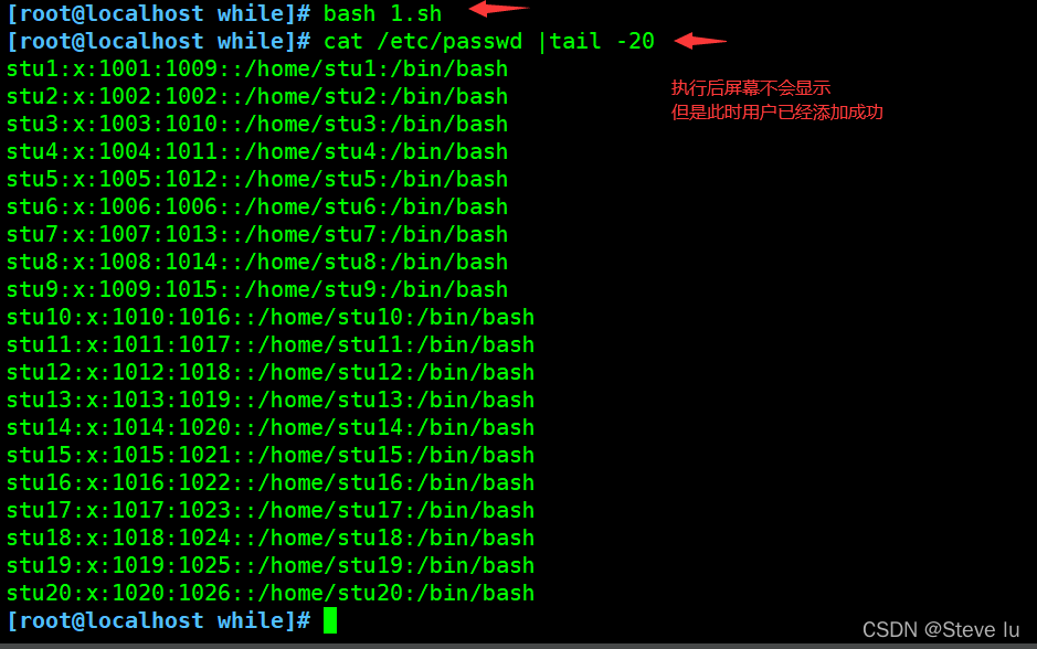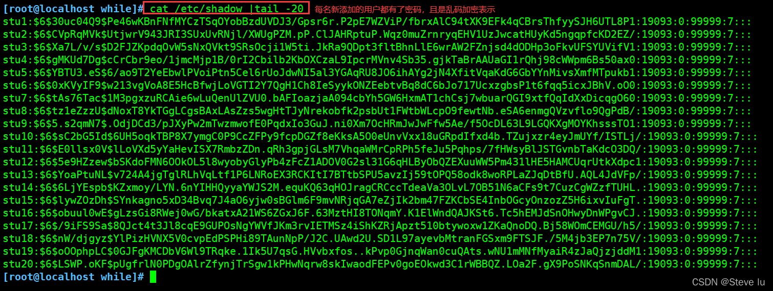 - 一共添加20个用户,即stu1、stu2......