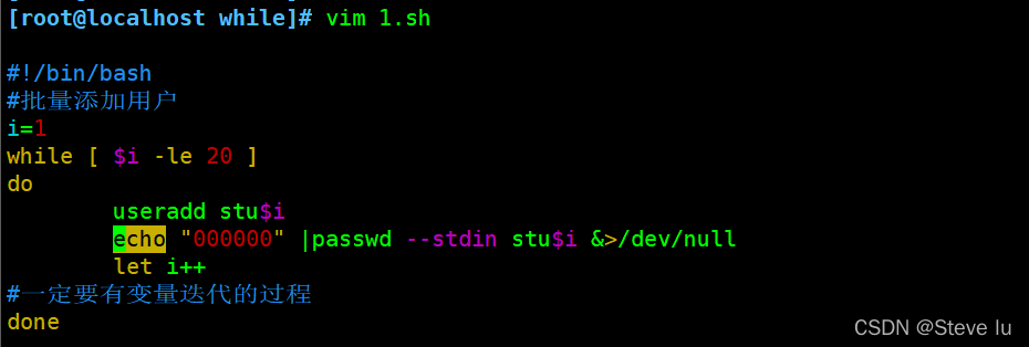 echo "000000" |passwd --stdin stu$i &>/dev/null