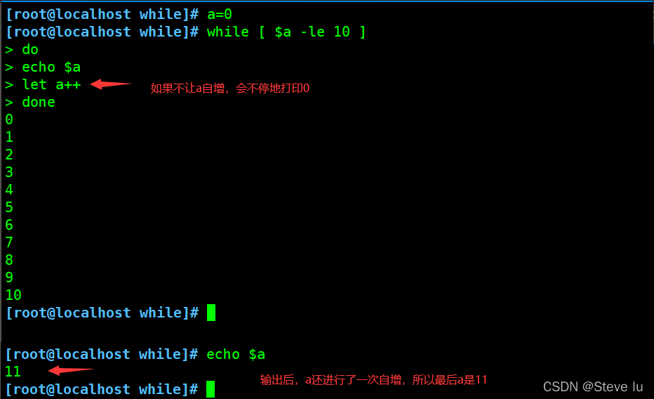 while [ $a -eq 0 ]