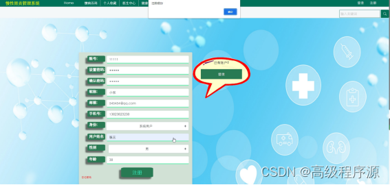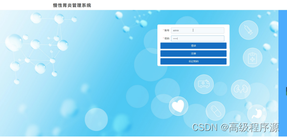 管理员登录慢性胃炎管理系统,在登录页面输入用户名、密码进行登录,如图5-1所示。