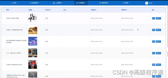 管理员进入系统后台可以查看:首页,网站管理(轮播图),人员管理(管理员,系统用户,医生用户),内容管理(慢病百科,分类列表),模块管理(医生中心,病例档案,咨询信息,诊断建议,健康饮食,健康运动),个人管理等功能,还可进行相应的操作,如图5-2所示。