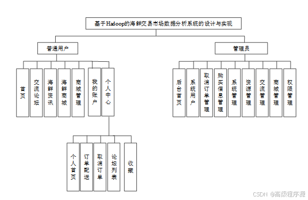 基于Hadoop的海鲜交易市场数据分析系统主要划分为了普通用户和管理员这两大角色。具体功能描述如下: