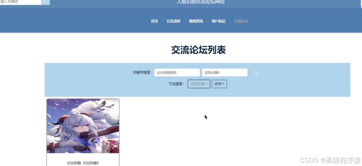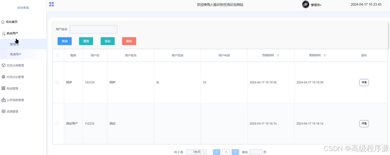 springboot人脸识别交流论坛网站系统分为两大部分:管理员模块、普通用户模块。