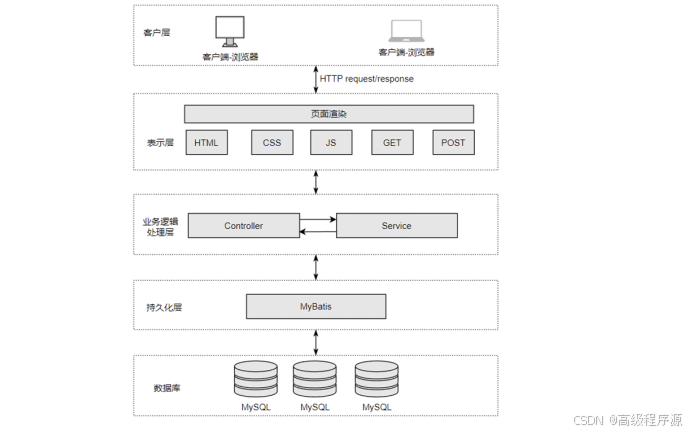B/S(Browser/Server)架构是一种基于浏览器和服务器的系统架构模式,用户通过浏览器与服务器进行交互。B/S架构简化了客户端的部署和管理,用户无需在本地安装复杂的软件,只需使用标准浏览器即可访问应用程序。服务器端负责处理业务逻辑和数据存储,客户端则主要负责展示用户界面和数据交互[3]。B/S架构通常采用Web技术进行实现,包括HTML、CSS和Vue.js等。用户在浏览器中发起请求,服务器响应并返回数据。数据传输通常通过HTTP或HTTPS协议进行,B/S架构的灵活性使其适用于在线购物、信息管理系统和社交网络等各类应用场景[4]。由于其易于扩展性,B/S架构可以方便地支持大规模用户访问,适应不断变化的业务需求。