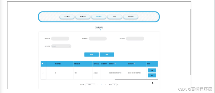 酒店预订管理:供应商可搜索和浏览自己的酒店预订信息。