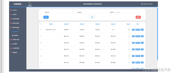 | 酒店信息查看功能测试 | 打开酒店信息管理页面 | 页面正常加载,显示酒店信息列表及操作选项 | 与预期一致 |