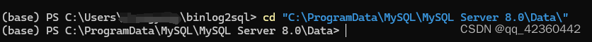 cd C:\"ProgramData"\MySQL\MySQL Server 8.0\Data\