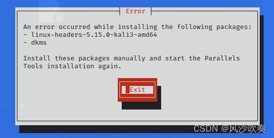 kali2022 parallels安装Tools报错 Unable to Locate Package linux-headers 解决方法 我的环境:2022.1 KaliMacOSparallels17 (解决方法可能与版本无关)先上图,我的报错如下第一步 使用kali官方源kali@kali:~$ echo "deb http://http.kali.org/kali kali-rolling main contrib non-free" | sudo tee /etc/apt/sources.list第二步 更新apt update -y && apt upgrade -y && apt