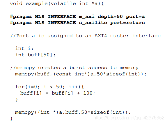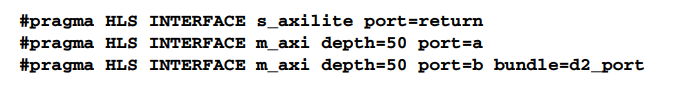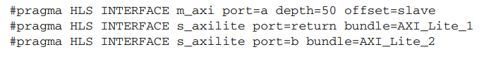 如果在AXI接口中使用slave选项,则必须在设计接口上使用AXI4-Lite端口。Xilinx建议使用以下pragma实现AXI4-Lite接口: