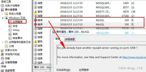 3、在右侧找到,最新的mysql错误信息。双击查看。