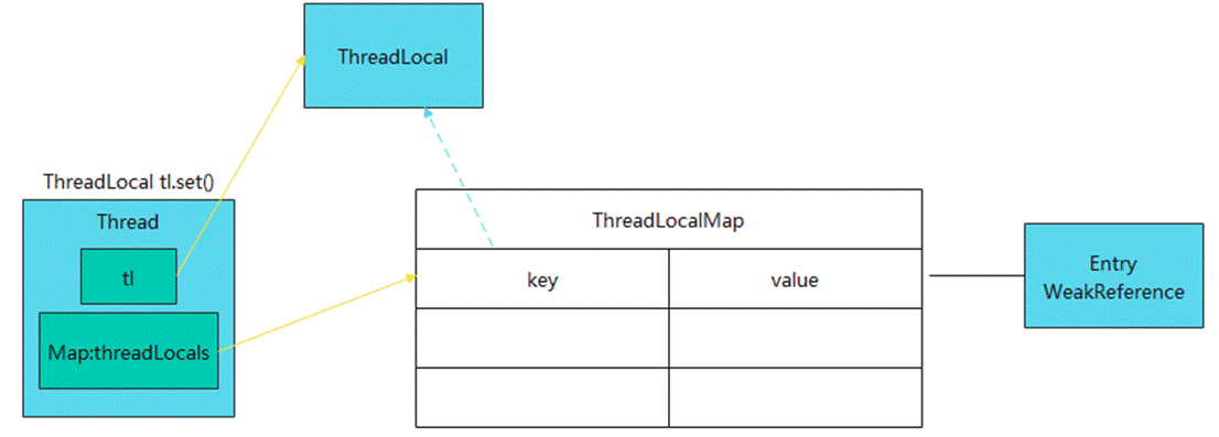 每个线程都有一个 ThreadLocalMap ( ThreadLocal 内部类),Map中元素的键为 ThreadLocal ,而值对应线程的变量副本。