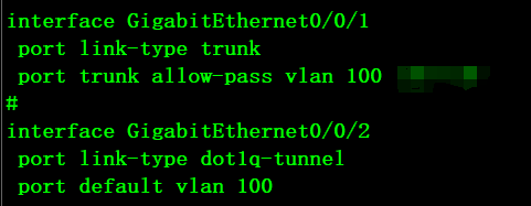 SW2/SW3,设置2口传过来的数据套上vlan100的tag转发