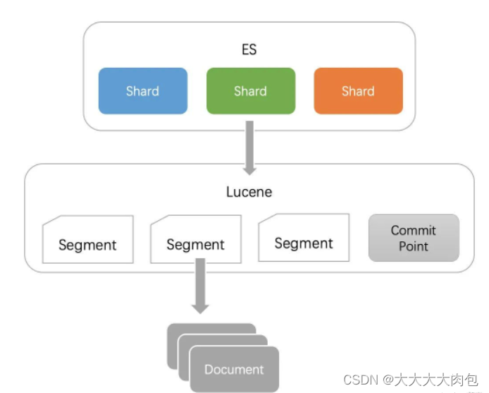 ES的底层是Lucene引擎,ES的每一个分片对应到底层实际上就是一个 Lucene Index,包含多个 segment 文件,和一个 commit point 文件。