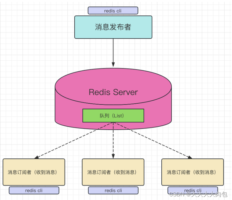 SUBSCRIBE channel [channel ...] :订阅给定的⼀个或多个频道的信息。PUBLISH channel message :将信息发送到指定的频道。UNSUBSCRIBE [channel [channel ...]] :指退订给定的频道。如果没有指定频道,则退订所有频道。PSUBSCRIBE pattern [pattern ...] :使⽤模式匹配订阅频道。PUNSUBSCRIBE [pattern [pattern ...]] :这个命令⽤于退订所有给定模式的频道。如果没有参数,那么客户端使⽤ PUNSUBSCRIBE 退订所有模式。