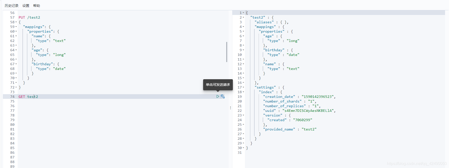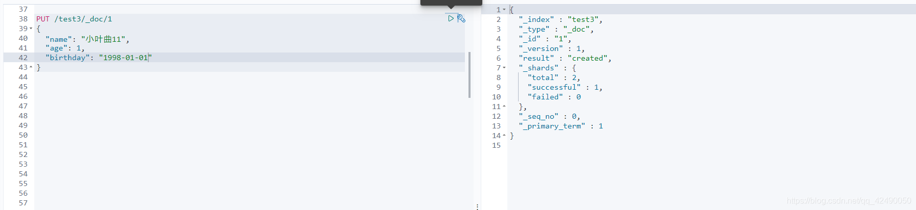 | POST | localhost:9200/索引名称/类型名称 | 创建文档(随机文档id) |