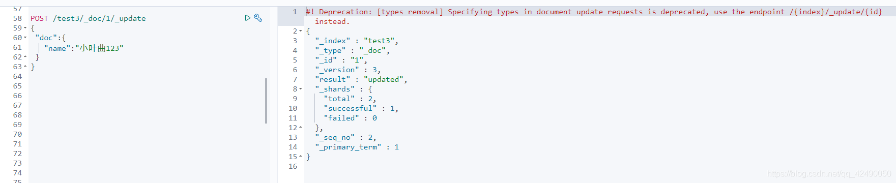 | POST | localhost:9200/索引名称/类型名称/文档id/_update | 修改文档 |