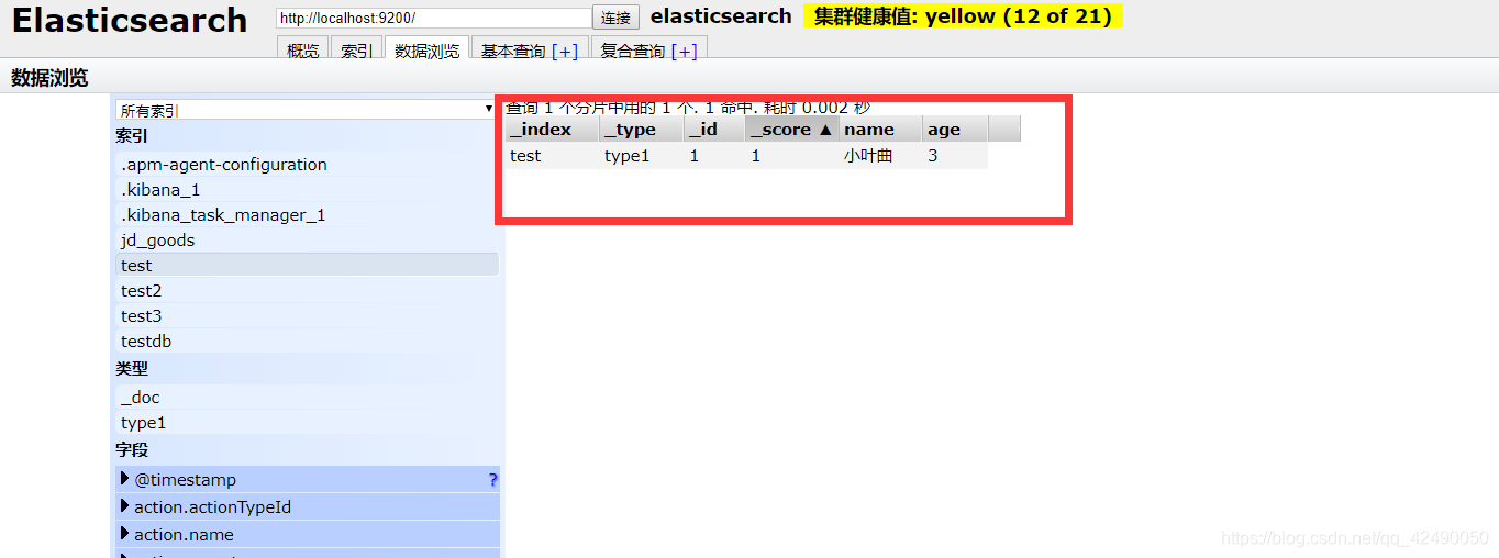 | GET | localhost:9200/索引名称/类型名称/文档id | 查询文档通过文档id |