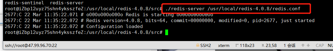 ./redis-server /usr/local/redis-4.0.8/redis.conf(注意要进入redis的src目录)