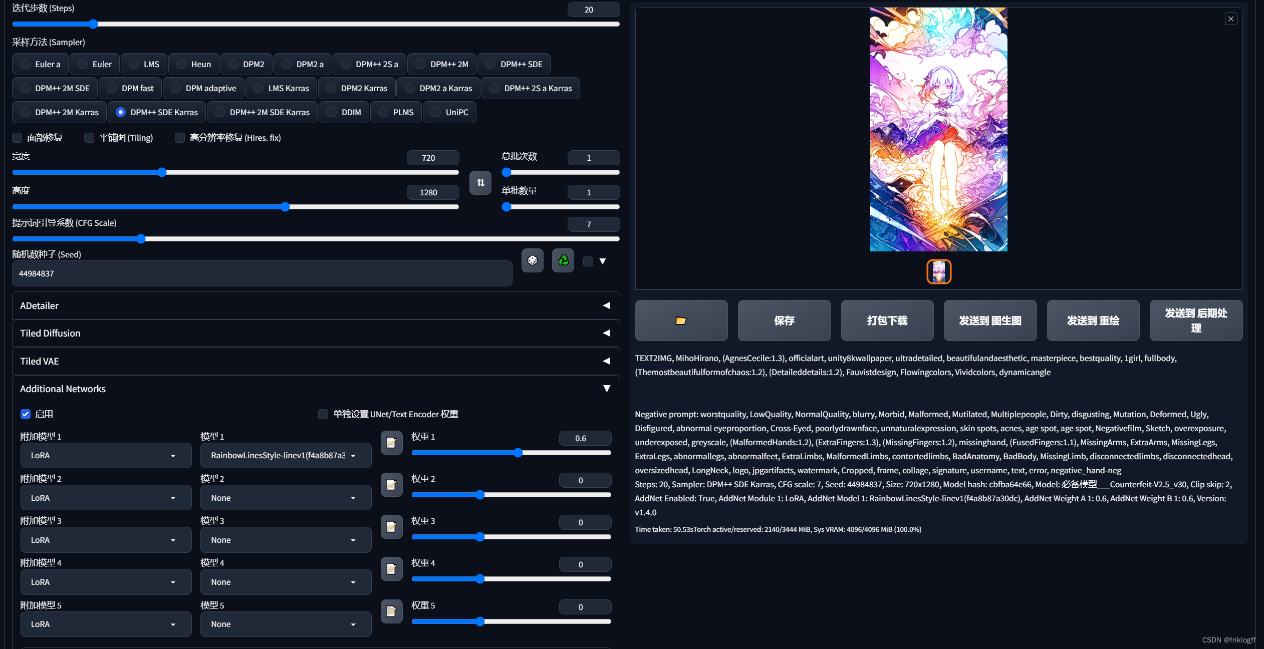 采样方法(Sampler):DPM++ SDE Karras提示词相关性(CFG Scale)CFG Scale:7