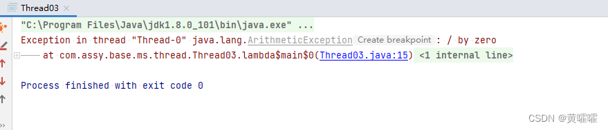 请看以下示例代码 , 我们在main函数里面new 一个线程 , 然后手动制造一个运行时异常