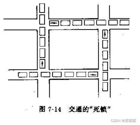 小黄和小卢同时去吃一份汉堡可乐, 然后小黄和小卢分别同时拿到了汉堡和可乐, 然后小黄又去拿可乐, 而这时候可乐再小卢手里 , 小卢也同时去哪汉堡 , 相同的汉堡在小黄手里 , 然后他们彼此还都不把手里现有的放回去 , 死锁就出现了