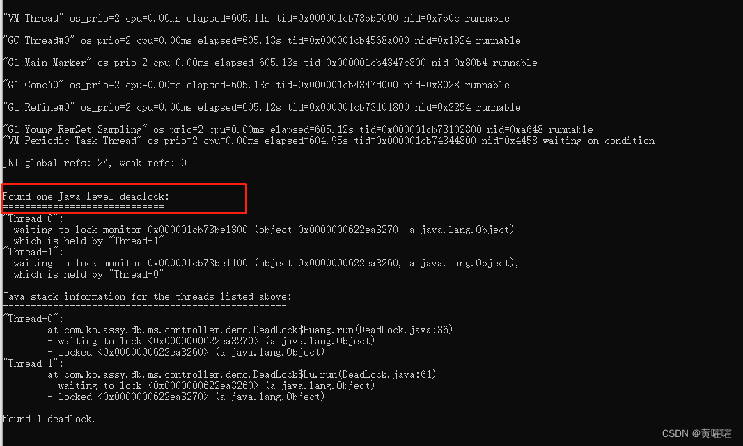 found one java-level deadlock , 发现一个死锁 , 并且列出了死锁的具体信息 ,