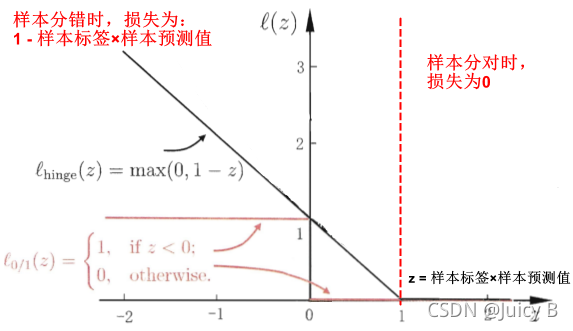 其中 l l l 表示损失函数。损失函数 l l l 一般有如下两种。为了方便表达,下面令 z = y i ( w T x i + b ) z = y_i(\boldsymbol w^T \boldsymbol {x_i}+b) z=yi(wTxi+b):