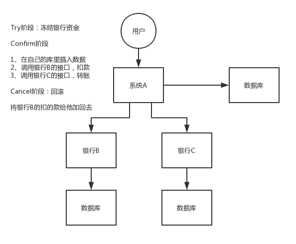 TCC 的全称是:Try、Confirm、Cancel。