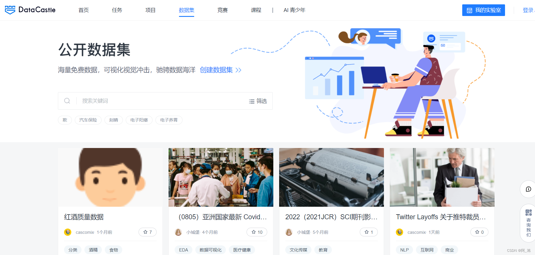在实际工作中,我们可以使用业务数据进行机器学习开发,但是在学习过程中,通常没有业务数据,此时可以使用公开的数据集进行练习训练,现给小伙伴们分享几个常用数据集网址如下,可以对感兴趣的数据集下载练习使用。操作起来吧~