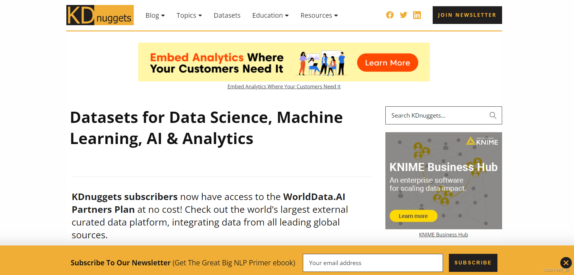3. Datasets for Data Science, Machine Learning, AI & Analytics - KDnuggets
