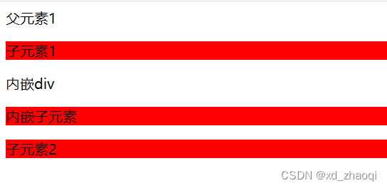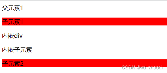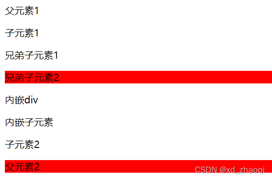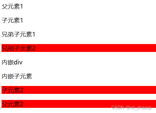 这里需要注意的是代码里面兄弟子元素2,前面注释了一行,如果没有注释则不会渲染背景色。