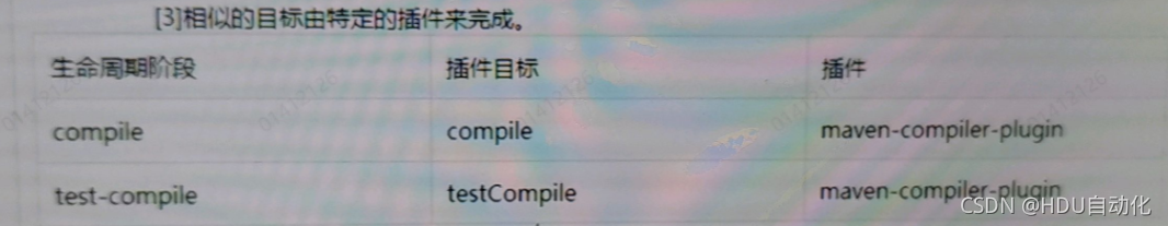 如下面表格里面所示,生命周期阶段是complice,插件目标也是complice,插件用的是maven-compiler-plugin