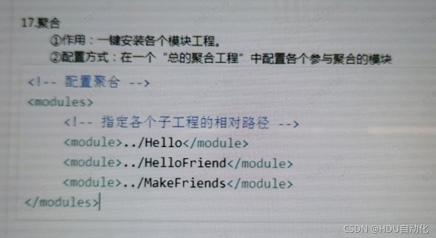 2)配置方式:在一个总的聚合工程中配置各个曾经参与聚合的模块