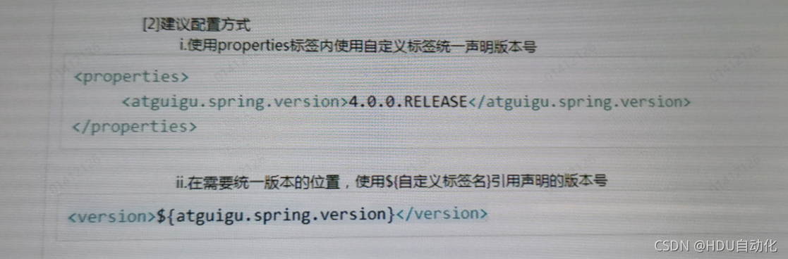 2)在需要统一版本的位置使用${自定义标签名}引用声明的版本号,如${atguigu.spring.version}