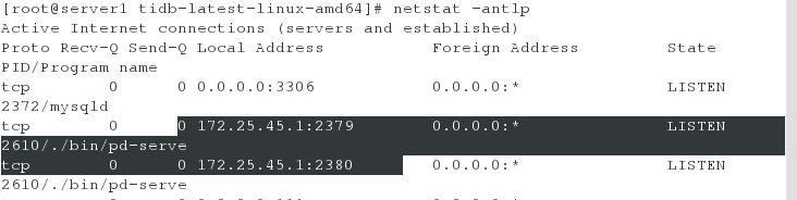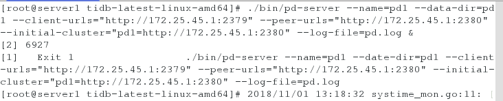 Server1:172.25.45.1 PD1 tidb zabbix-server