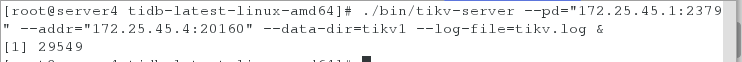 ./bin/tikv-server --pd="172.25.45.1:2379" --addr="172.25.45.2:20160" --data-dir=tikv1 --log-file=tikv.log &