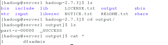 [hadoop@server1 hadoop-2.7.3]$ cd output/