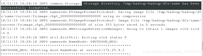 [hadoop@server1 hadoop-2.7.3]$ bin/hdfs namenode -format ##格式化