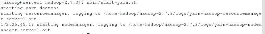 [hadoop@server1 hadoop-2.7.3]# sbin/start-yarn.sh ###停止的话把start换成stop即可